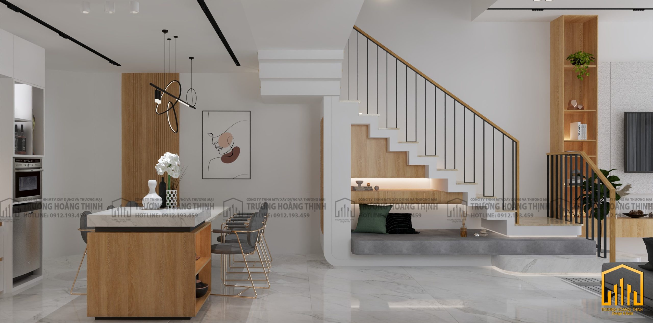 ✨ Chúng tôi chọn kiến trúc lệch tầng làm phương án hoàn hảo để tôn lên sự sang trọng, thanh lịch và ấm cúng cho ngôi nhà của anh. Bên cạnh đó, vẫn đảm bảo công năng sinh hoạt riêng tư cho đầy đủ các thành viên đồng thời mở ra 2 ô giếng trời kết hợp với phòng sinh hoạt chung tạo thành 1 trung tâm kết nối toàn bộ các thành viên trong gia đình. Cuối cùng, THT sử dụng gam màu trắng tinh khôi chủ đạo kết hợp với màu sắc ấm cúng của chất liệu gỗ tạo nên sự đơn giản, ấm áp và bình yên cho ngôi nhà.