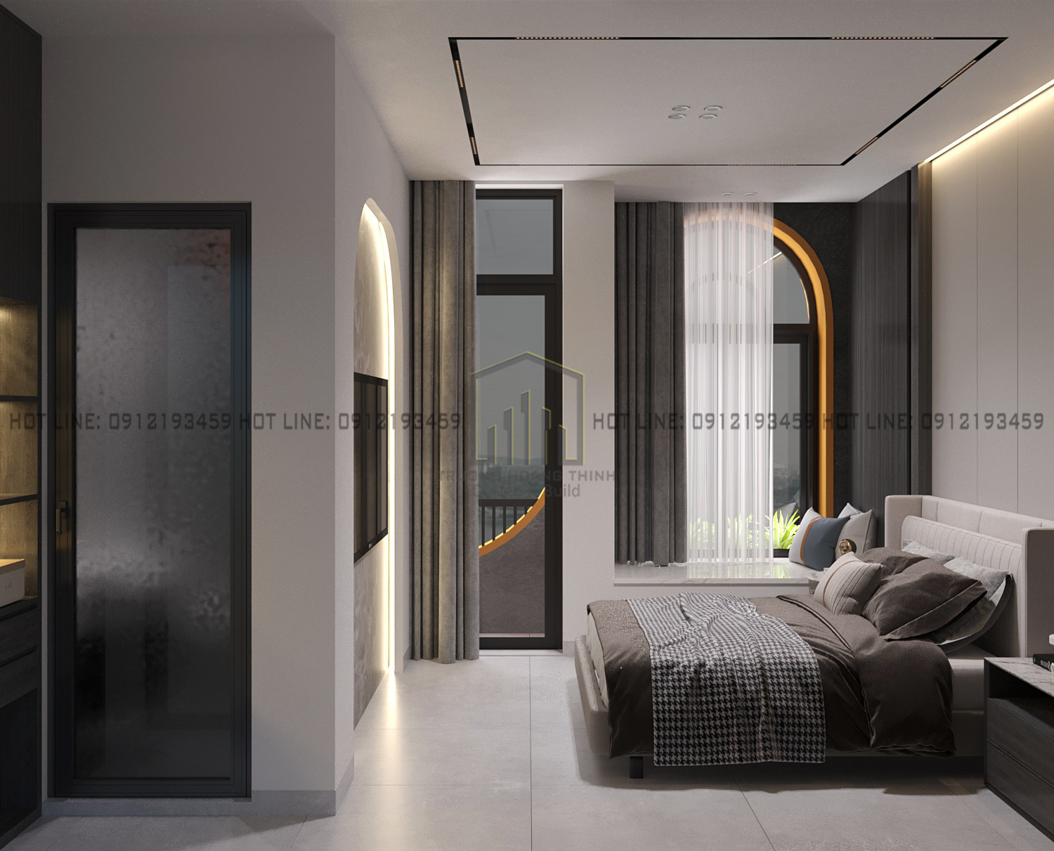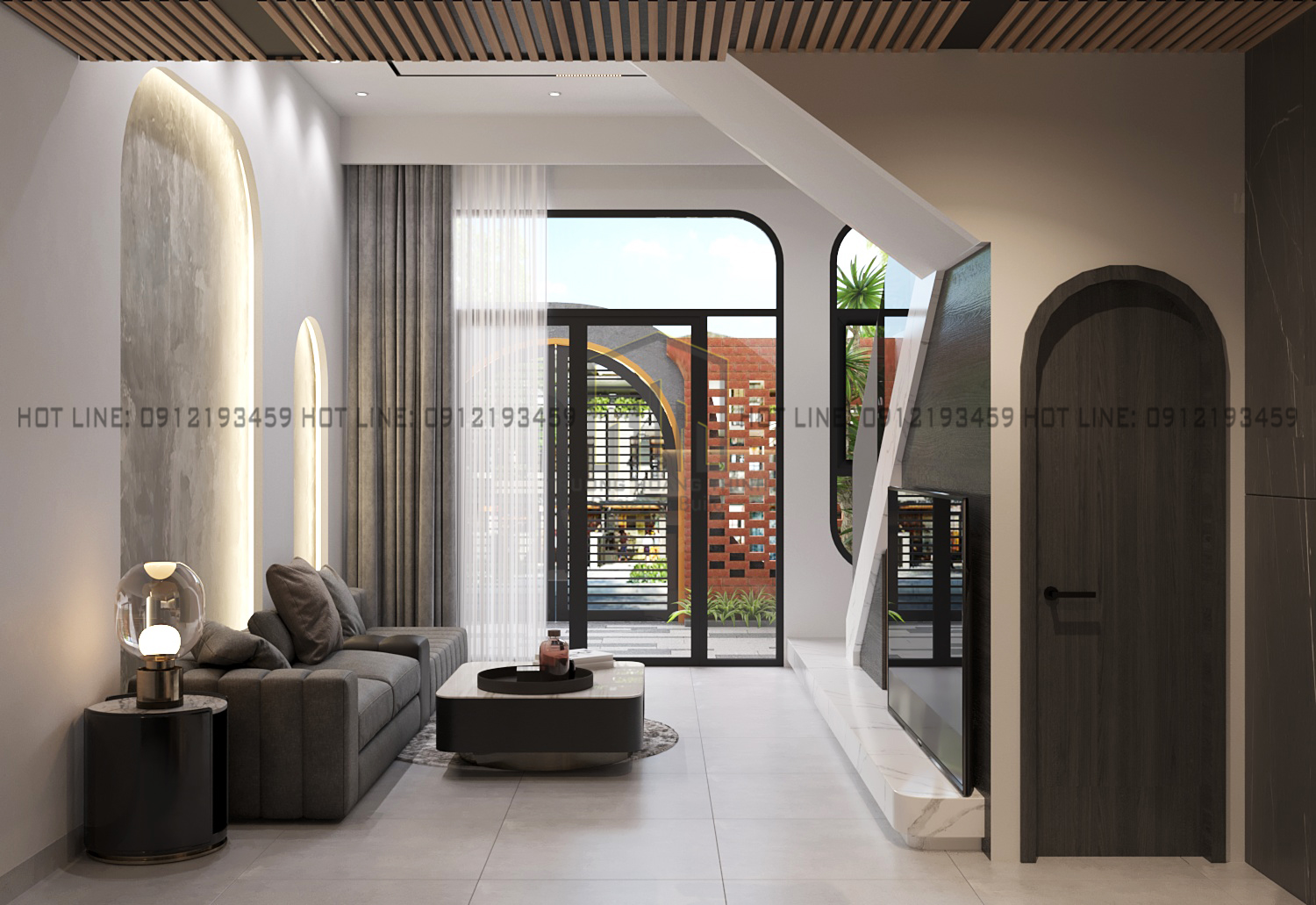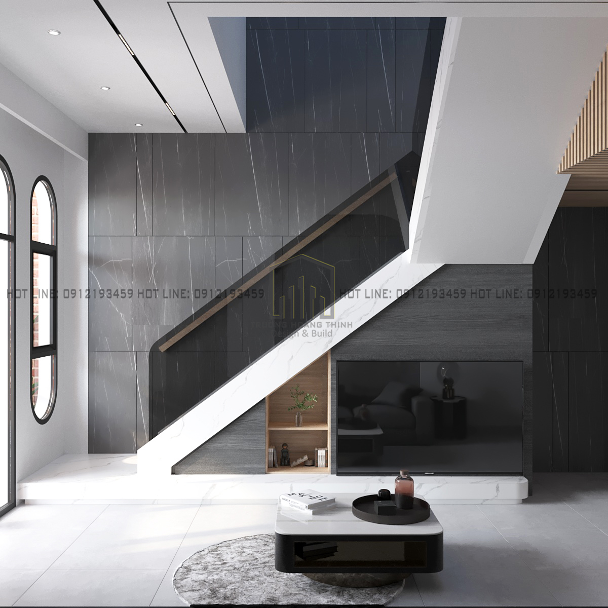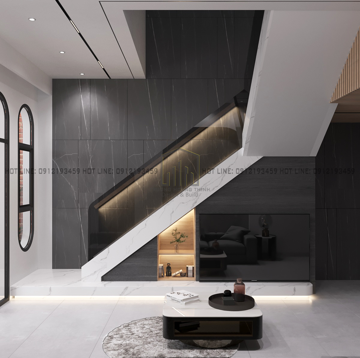 Với ngôi nhà của Mr.Nhựt, THT đã khéo léo sử dụng nghệ thuật những đường cong uyển chuyển giúp mặt tiền trở nên ấn tượng và độc đáo. Đặc biệt, sự kết hợp của những đường nét kiến trúc tối giản ở bên trong căn nhà cùng với tone màu xám – trắng làm chủ đạo càng khiến cho ngôi nhà trở nên hiện đại và sang trọng hơn.