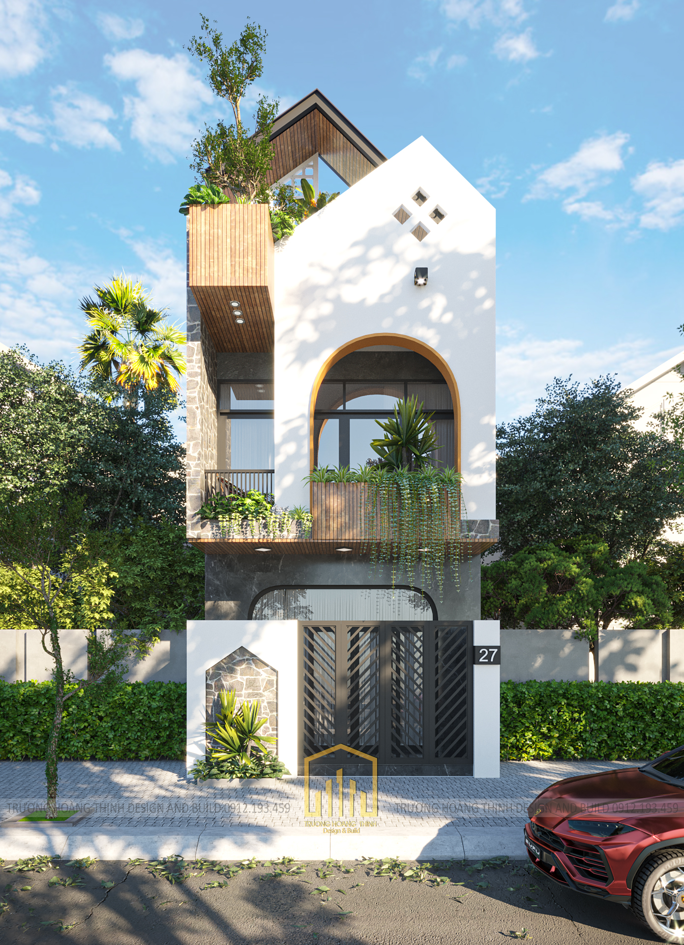 – Gồm Tầng Trệt, tầng lầu và sân thượng có mái che nhỏ là nơi lý tưởng để thư giản, tạo một khu vườn nhỏ nhiều cây xanh tạo sự gần gũi thiên nhiên và thoải mái cho gia chủ.